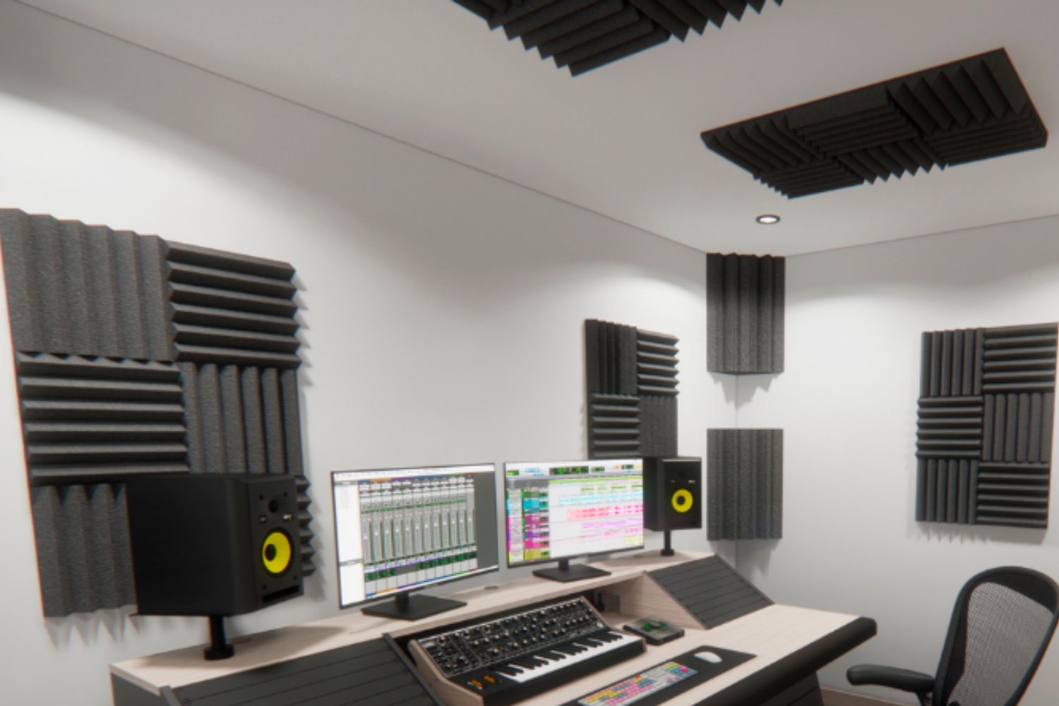 | Materials | Mass-loaded vinyl, double drywall, resilient channels, acoustic sealant | Fabric-wrapped panels, bass traps, diffusers |
